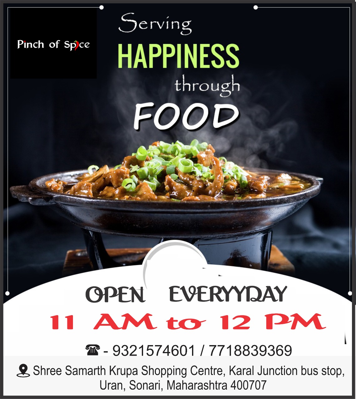 Pinch Of Spice is a Indian word for invitation at specific place and time. We draw the inspiration from our Indian culture where 'The guest is equivalent to God'. We invite you i.e. give Pinch Of Spice to relish food at one of the best multi-cuisine veg & non-veg restaurant in Ulwe and Uran